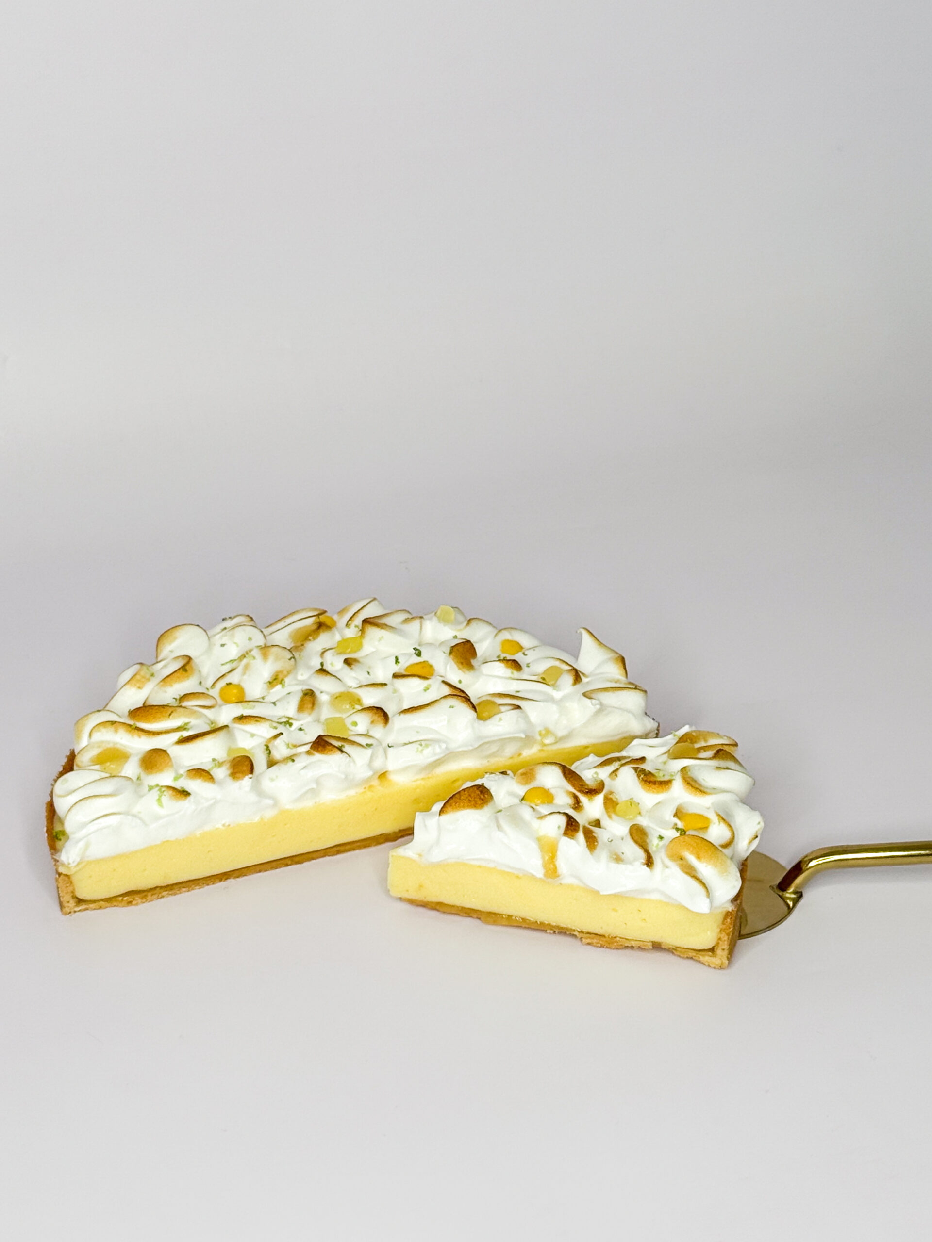 pâte sucrée amande / gel yuzu / crémeux citron / meringue italienne / condiment kumquat & gelée de kalamansi